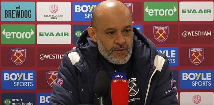 英超第26轮,西汉姆联将主场迎战曼联,铁锤帮主帅努诺于赛前接受媒体采访,展望了这场较量。